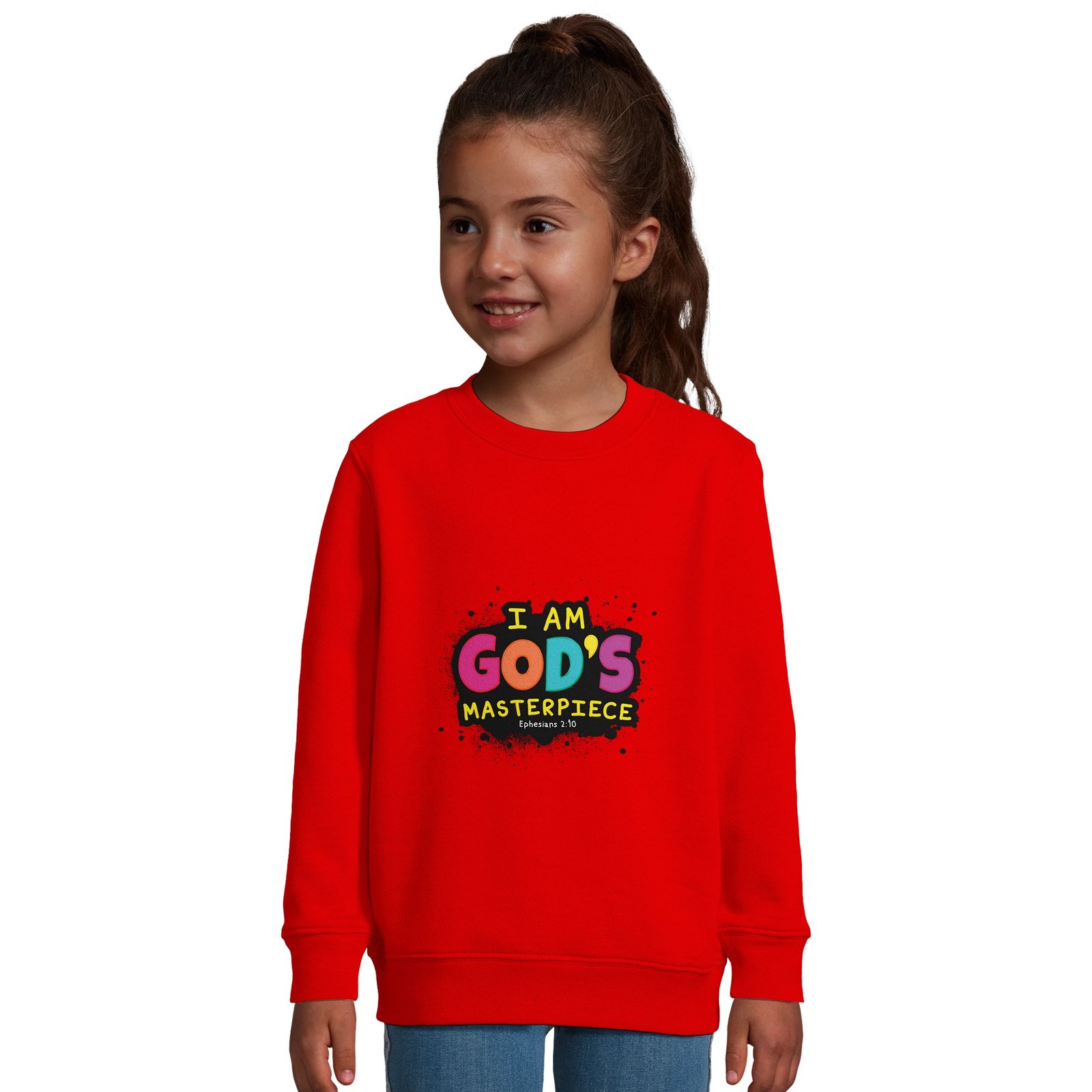 Keep your little one warm — inside and out — with this “I Am God’s Masterpiece” sweatshirt, inspired by Ephesians 2:10:
